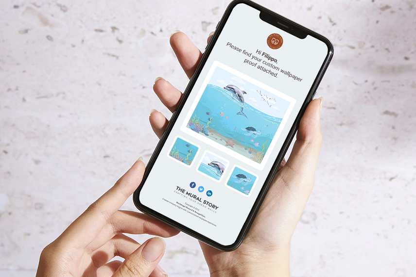 Our design team will create the design of your custom wallpaper and then send you a digital preview within 3 working days. This allows you to check if it’s an exact fit for your chosen wall. Once you are happy with the proof we will then proceed to print and ship to you.