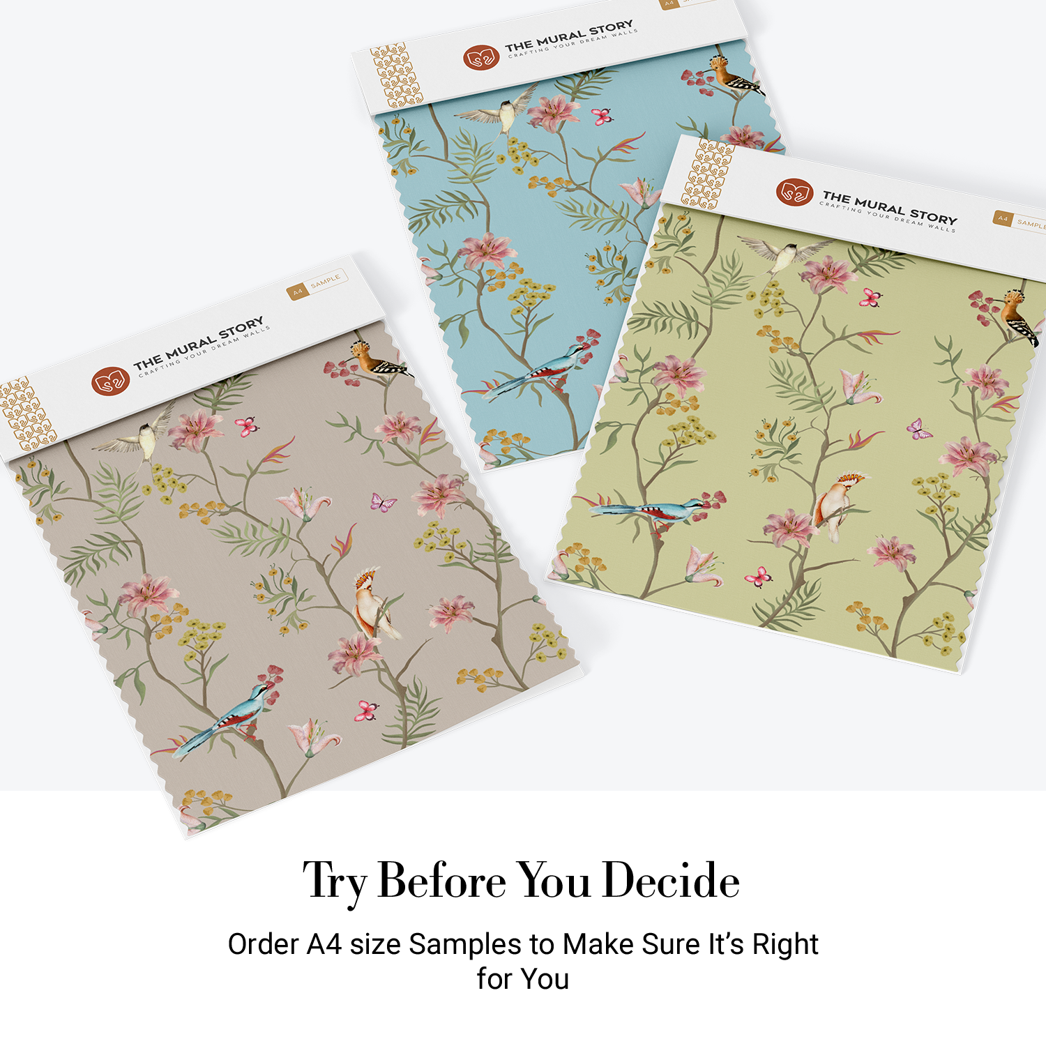 Not sure which wallpaper design suits your space? Order samples to test colors and adhesion before making a final decision. Please note, these samples are a preview of the design's look and feel and may include a stamp for reference. While samples give an idea of the color and texture, they may not represent the entire pattern or scale fully.