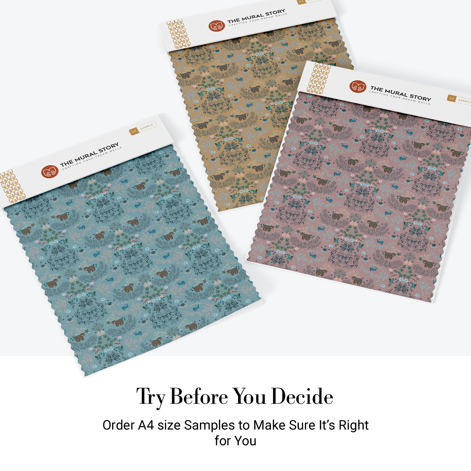 At The Mural Story, we utilize advanced Latex printing technology with water-based inks to ensure non-toxicity and environmental safety. Our exclusively paper-based materials deliver a premium, high-quality, and easy-to-maintain finish, avoiding the use of glossy PVC/Vinyl/HD papers for a truly refined and eco-friendly experience.