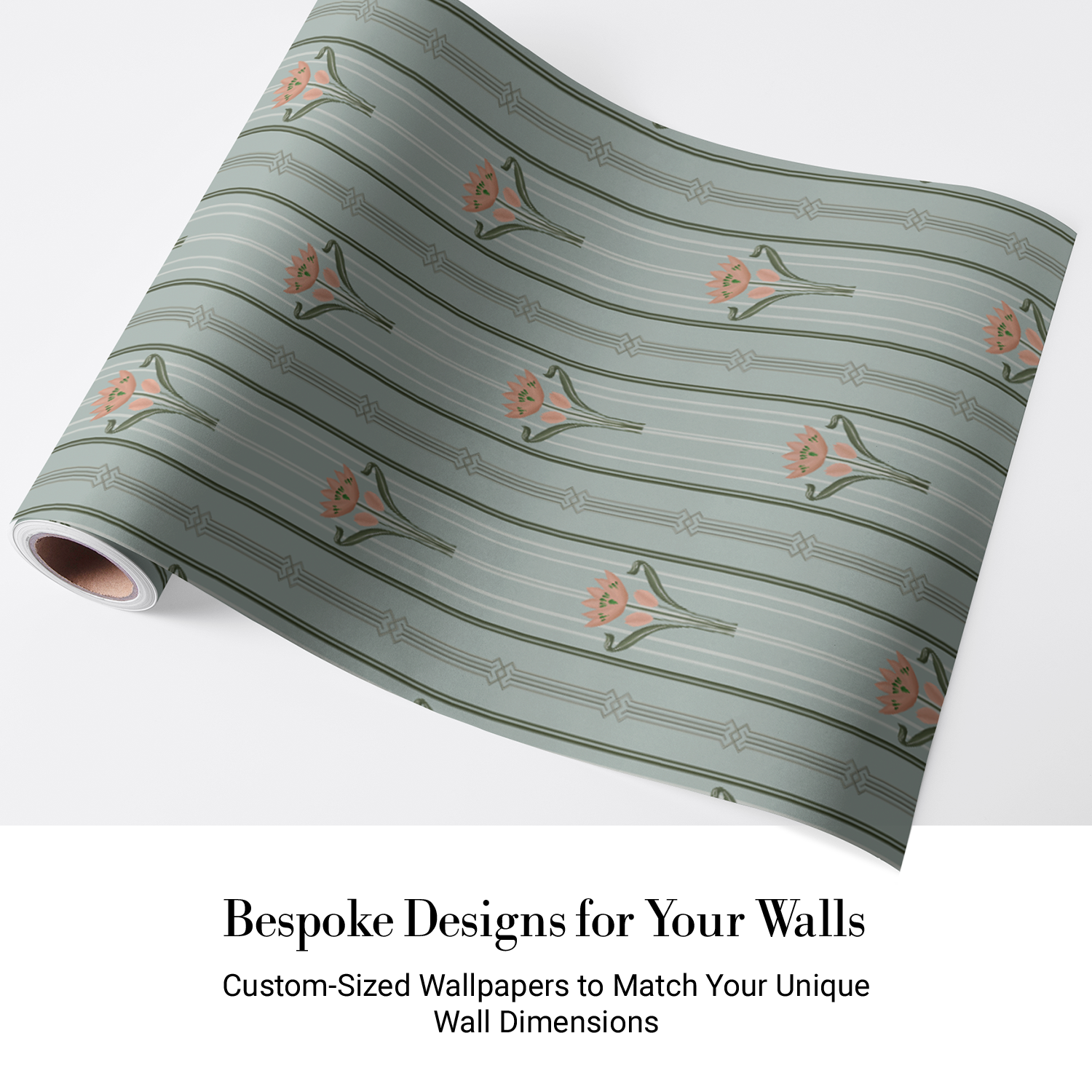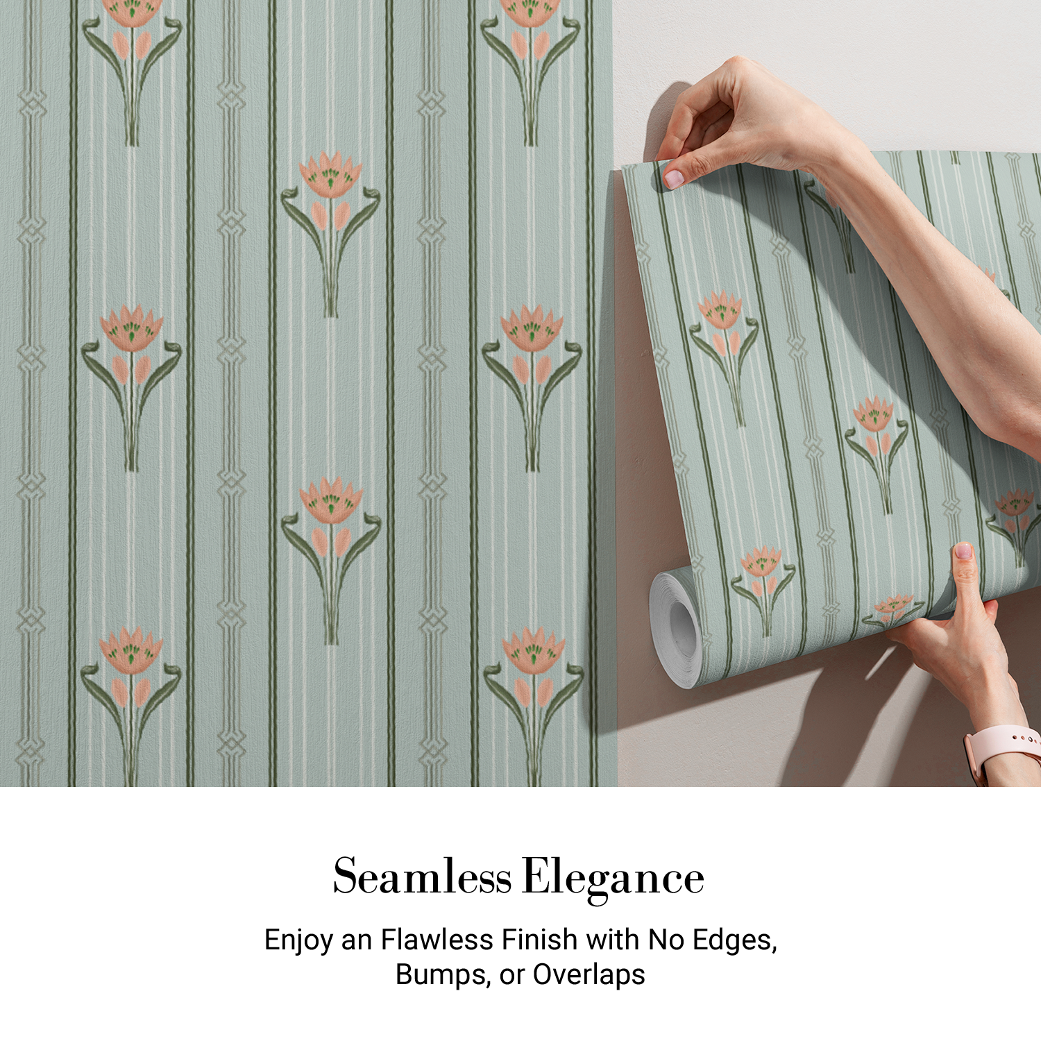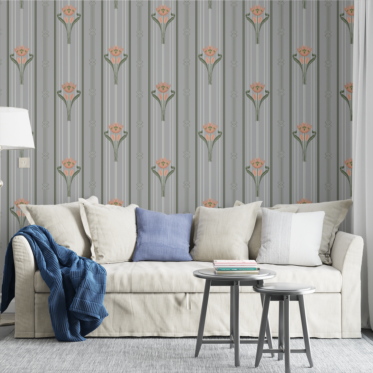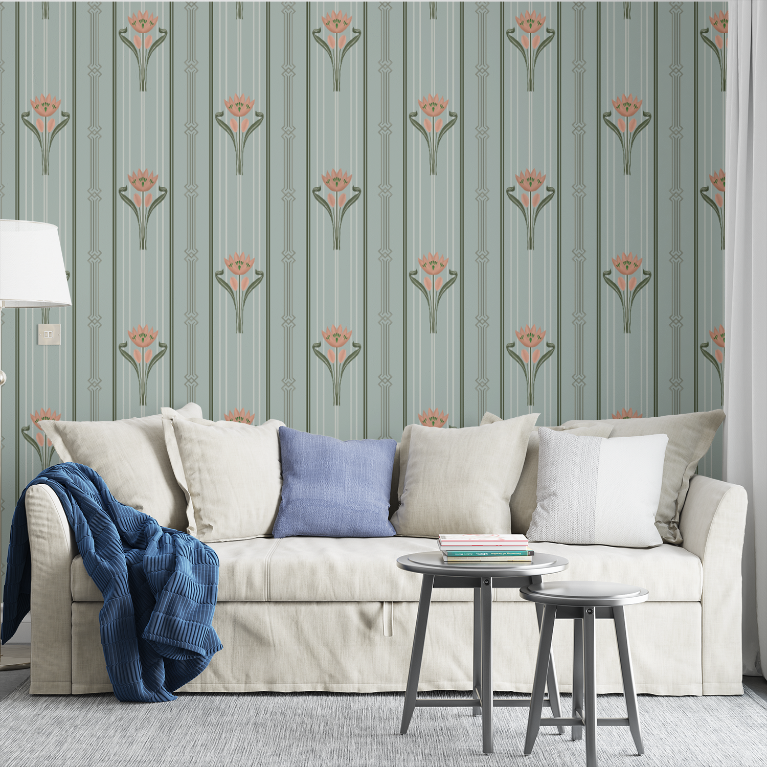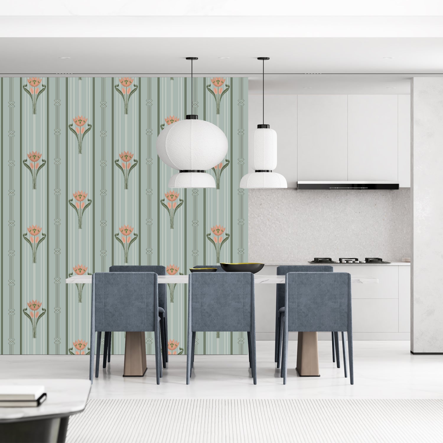 Timeless Tulip Stripes – Elegant Floral Art Deco Wallpaper