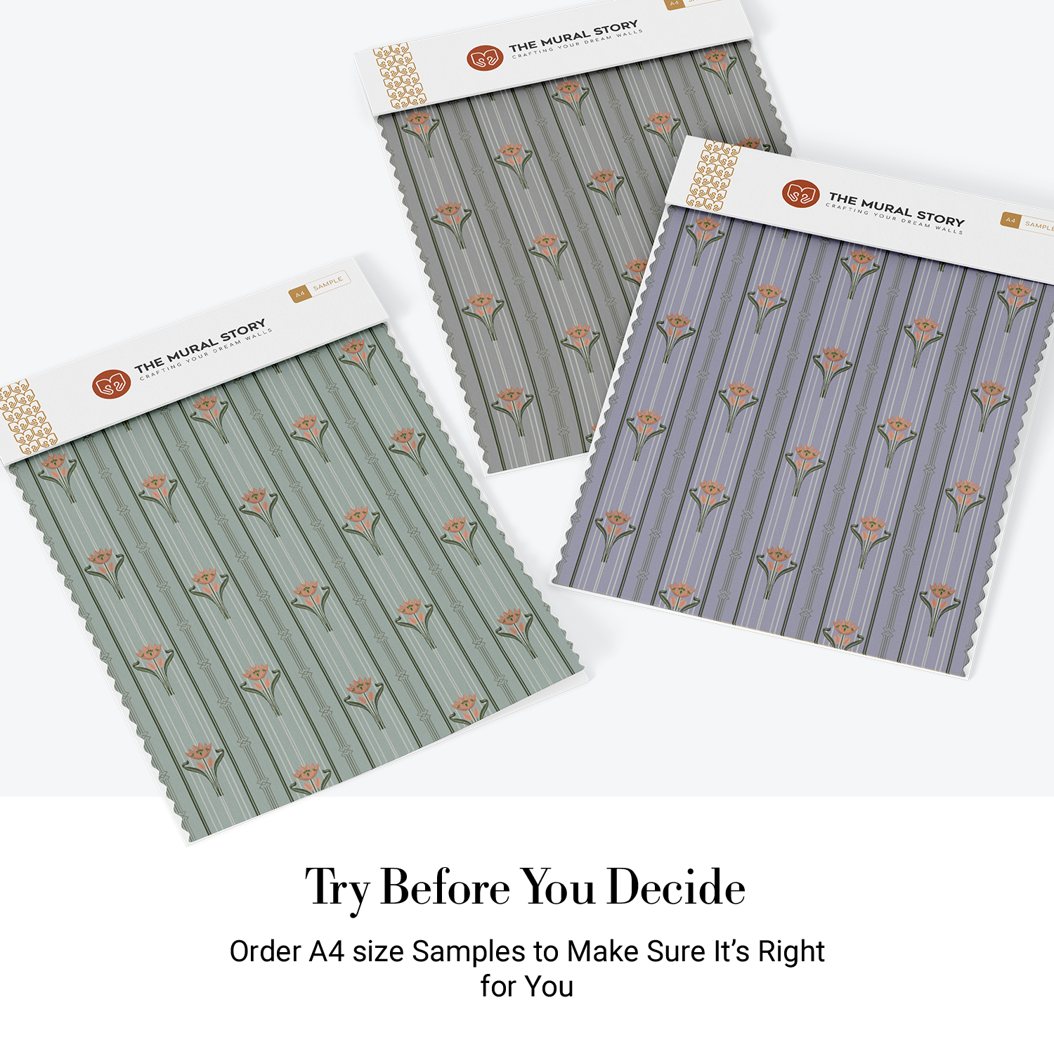 Not sure which wallpaper design suits your space? Order samples to test colors and adhesion before making a final decision. Please note, these samples are a preview of the design's look and feel and may include a stamp for reference. While samples give an idea of the color and texture, they may not represent the entire pattern or scale fully.