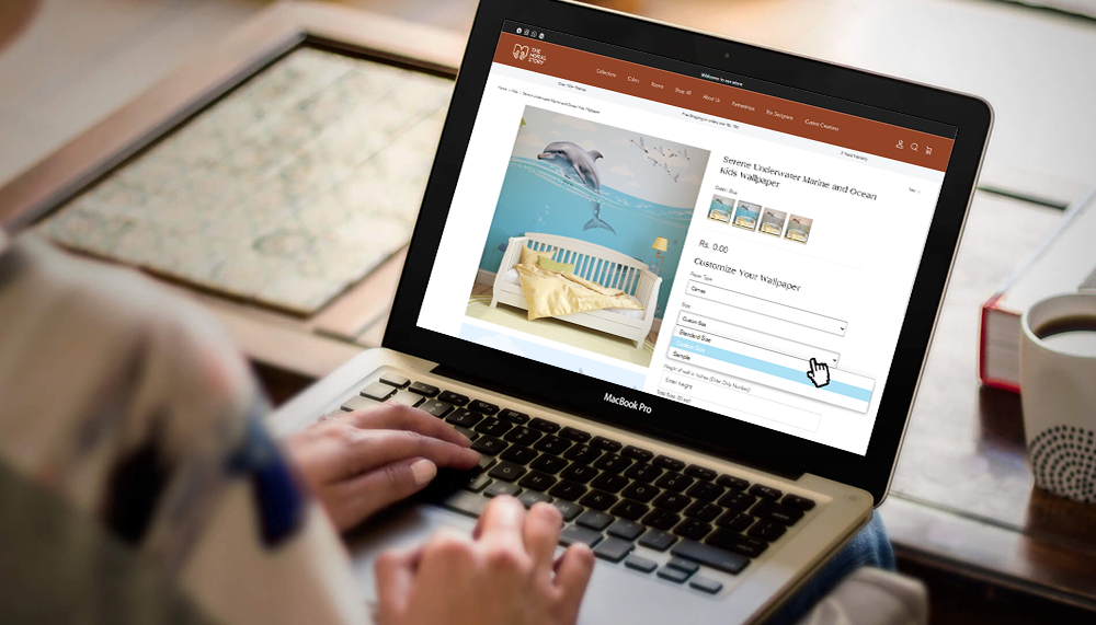 For the next step in the ordering process, you must enter the height and width of your wall or the location where you want to stick your wallpaper. Tell us if there are specific details like doors, corners, windows or beds, or else.