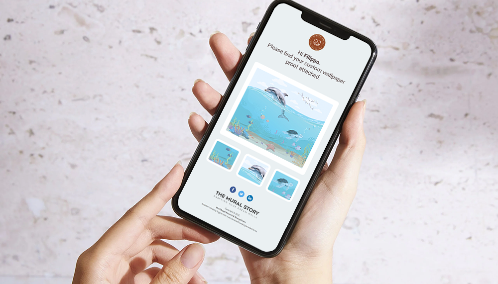 Our design team will create the design of your custom wallpaper and then send you a digital preview within 3 working days. This allows you to check if it’s an exact fit for your chosen wall. Once you are happy with the proof we will then proceed to print and ship to you.
